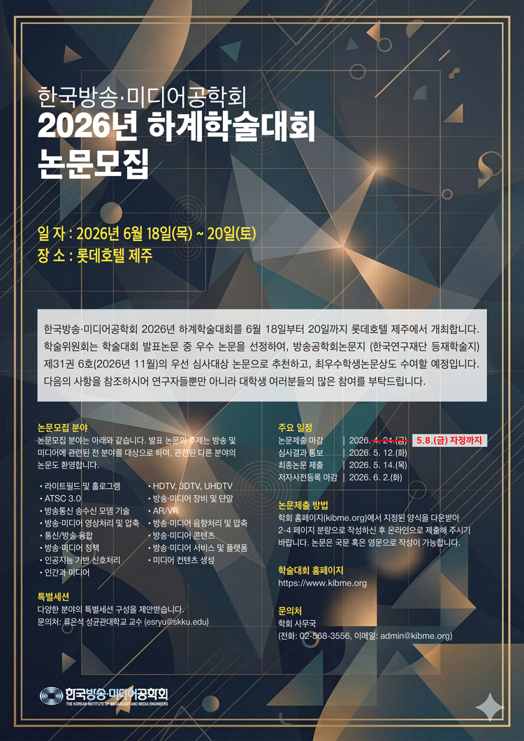 * 학술대회/경진대회 논문 제출 마감일이 5월  8일(금) 자정까지로 연장되었습니다.