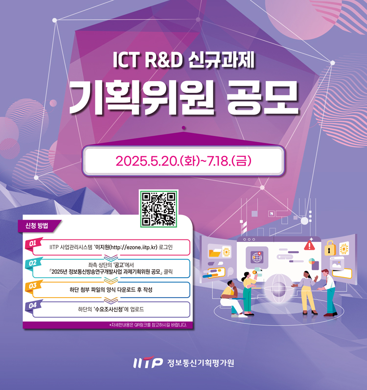 [IITP] 2025 ICT R&D 신규과제 기획을 위한 기획위원 공모 (공모 기간: ~7.18.(금)까지)