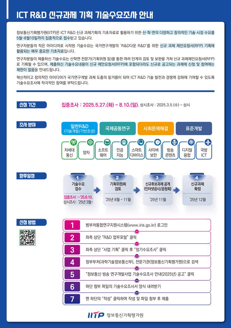 [IITP] 2025 ICT R&D 신규과제 기획 기술수요조사 안내