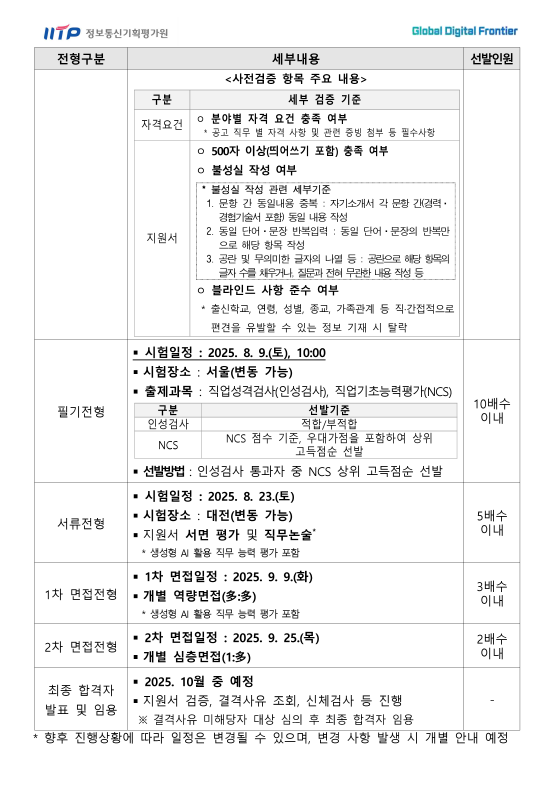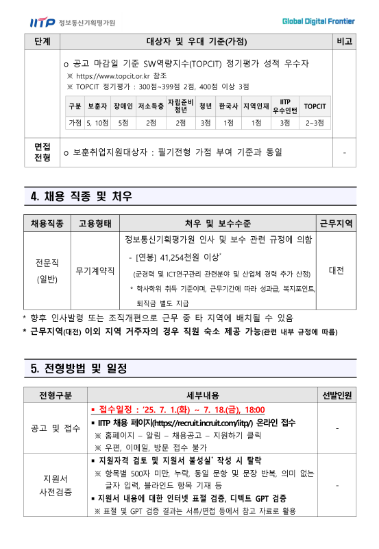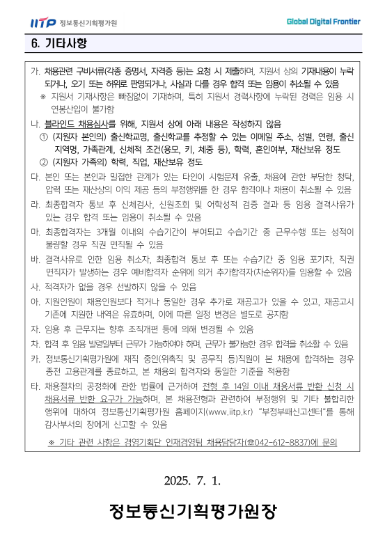[IITP] 2025년 정보통신기획평가원 직원(전문직(일반)) 채용 공고 (접수마감: 7월18일(금) 18시)