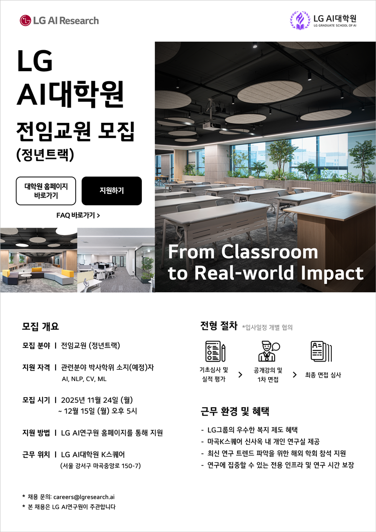 [LG AI대학원] 전임교원(정년트랙) 채용공고 (접수마감: ~12.15.(월) 17시까지)
