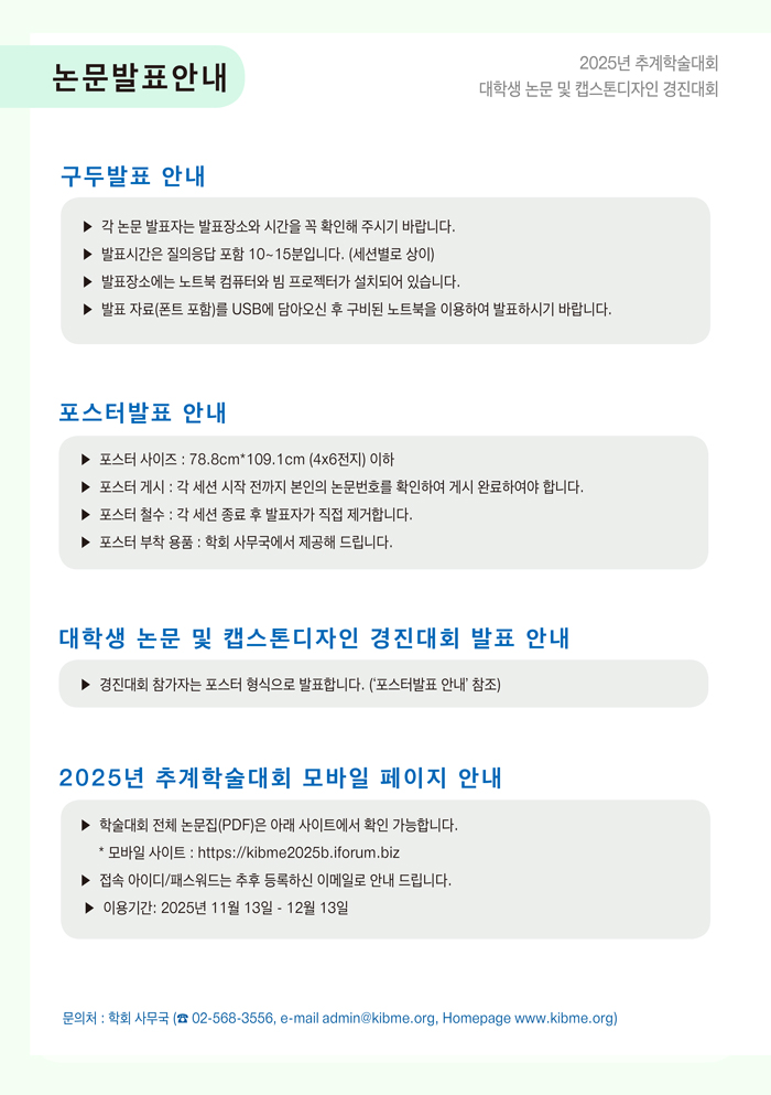 * 학술대회 자료집은 학술대회 온라인 페이지에서 다운로드하실 수 있습니다.  (https://kibme2025b.iforum.biz/)