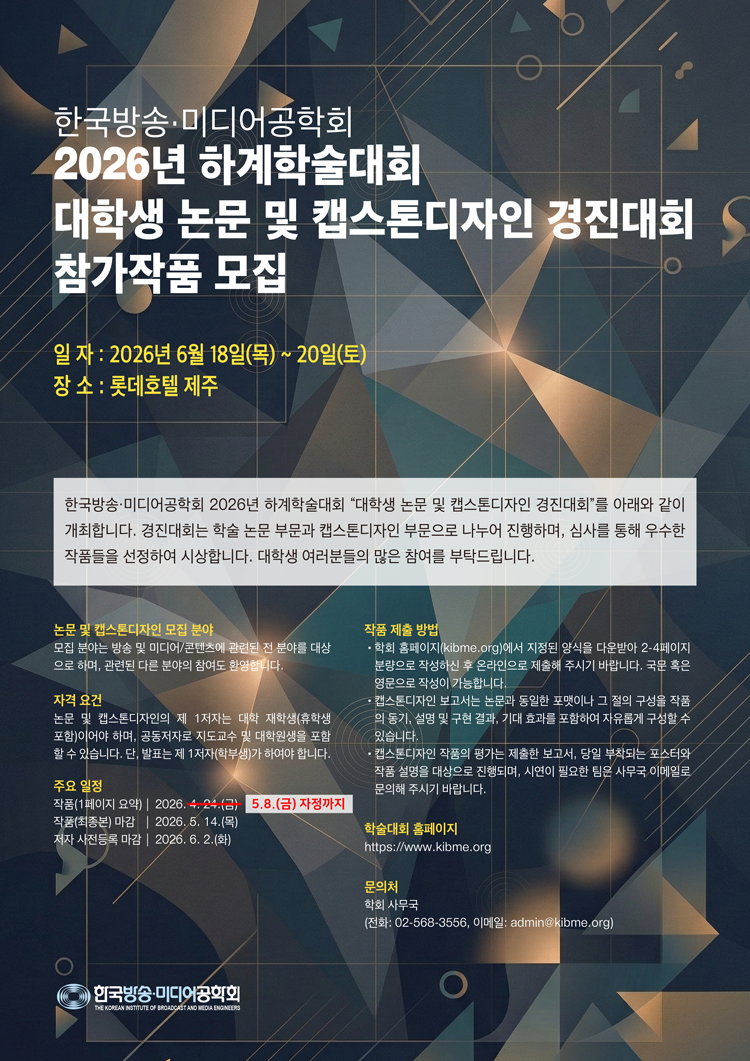 * 학술대회/경진대회 논문 제출 마감일이 5월  8일(금) 자정까지로 연장되었습니다.