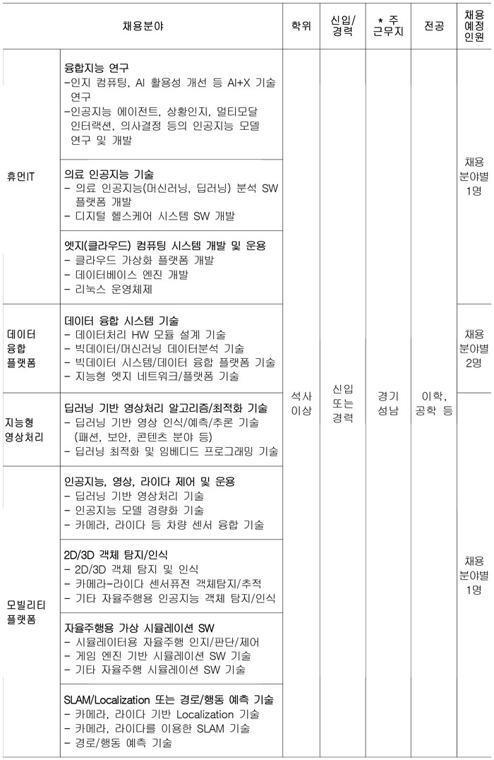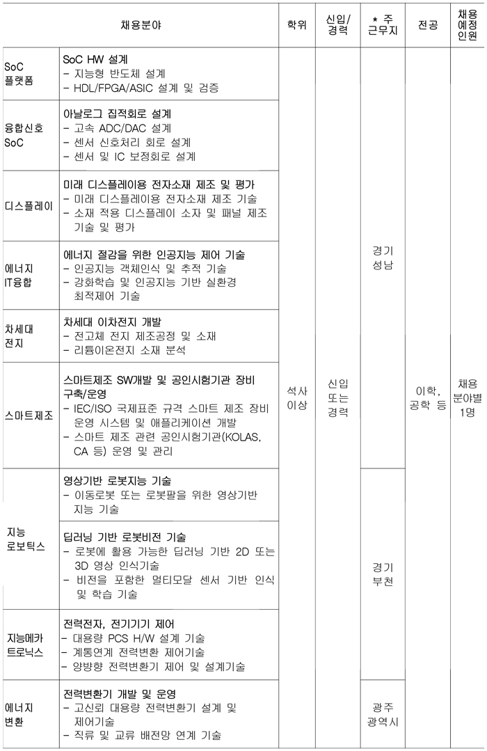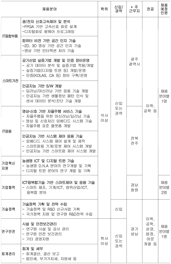 금번 2021년 3차 석·박사급 정규직 연구인력과 행정인력 공개채용을 진행하고 있습니다 .
