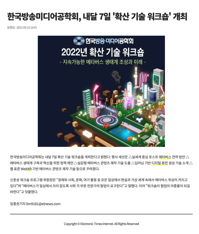 [전자신문] '2022년 확산 기술 워크숍' 개최