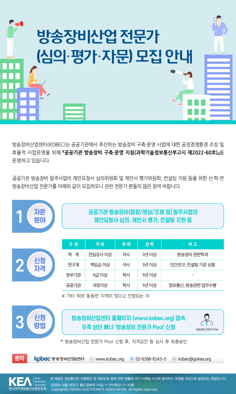 [방송장비산업센터_KOBEC] 방송장비산업 전문가(심의, 평가, 자문) 모집 안내