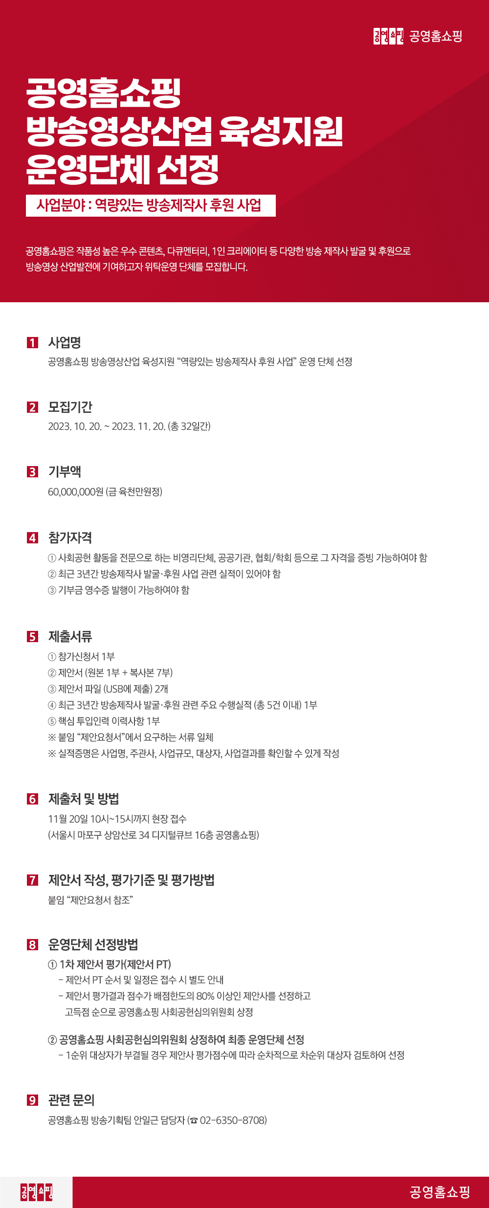 [공영홈쇼핑] 방송영상산업 육성지원 "역량있는 방송제작사 후원 사업" 운영 단체 선정