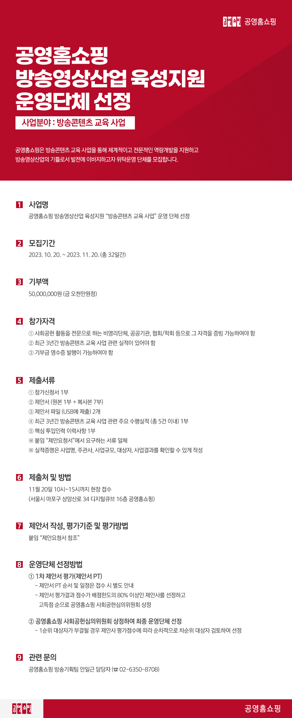 [공영홈쇼핑] 방송영상산업 육성지원 "방송콘텐츠 교육 사업" 운영 단체 선정